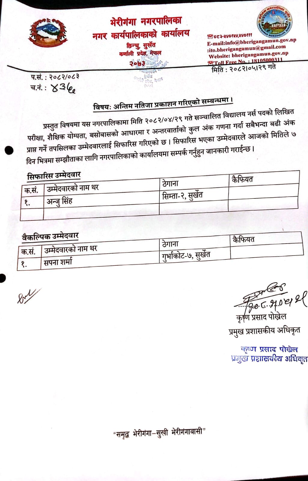 अन्तिम नतिजा प्रकाशन गरिएको सम्बन्धी सूचना।