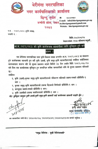 आ व ०८२/०८३ को कृषि कार्यक्रममा सहभागीका लागि सुचिकृत हुने बारे सूचना।