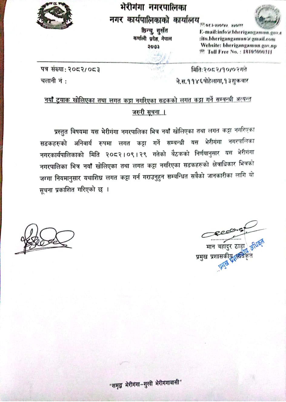 नयाँ ट्रयाक खोलिएका तथा लगत कट्टा नगरिएका सडकको लगत कट्टा गर्ने सम्बन्धी सूचना